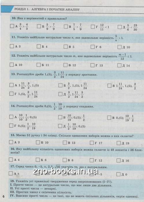 До кожного параграфа посібника подано теоретичні відомості зі зразками розв'язування вправ і тестові завдання різних типів. Таку побудову зумовлено тим, що під час підготовки до тестування недостатньо оволодіти теоретичним програмовим матеріалом - потрібно вміти його застосовувати. Саме тому кожний теоретичний блок супроводжується відповідними тестовими завданнями за темою, які розподілено так: