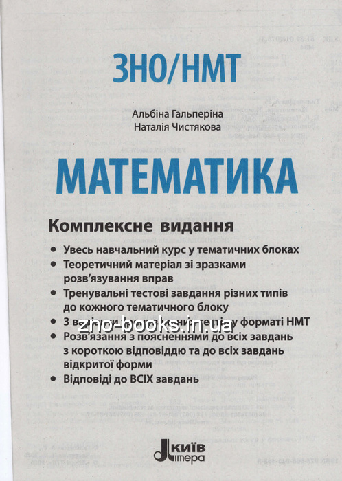 Гальперіна А., Чистякова Н. Математика. Комплексне видання ЗНО НМТ 2026 : Літера. купити