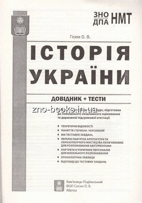 Гісем О. Історія України ЗНО НМТ 2026. Довідник + тести. Повний курс : видавництво Абетка. купити