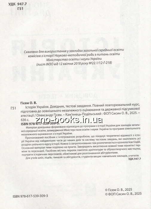 Гісем О. Історія України ЗНО НМТ 2026. Довідник + тести. Повний курс : видавництво Абетка. купити