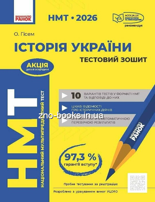 Історія України НМТ 2026. Тестовий зошит : Гісем О. видавництво Ранок.