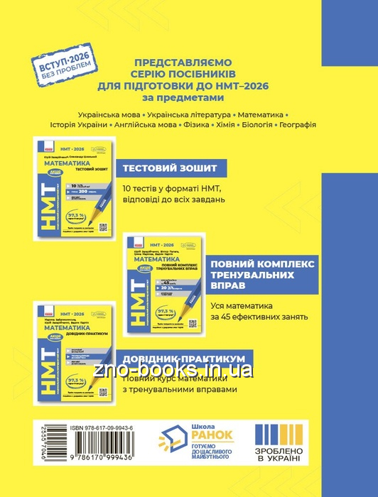 Математика НМТ 2026. Тестовий зошит : Захарійченко Ю., Школьний О., Роганін О. Ранок.