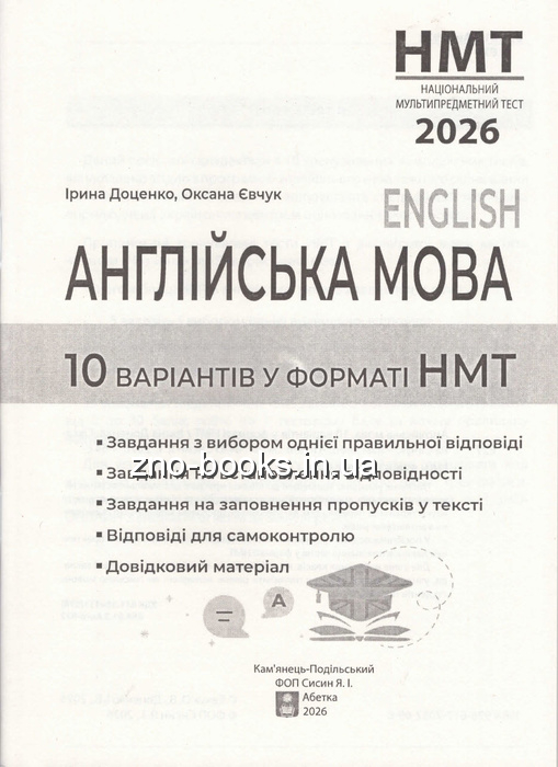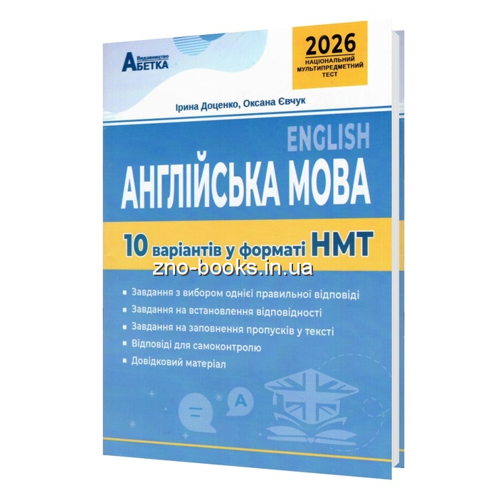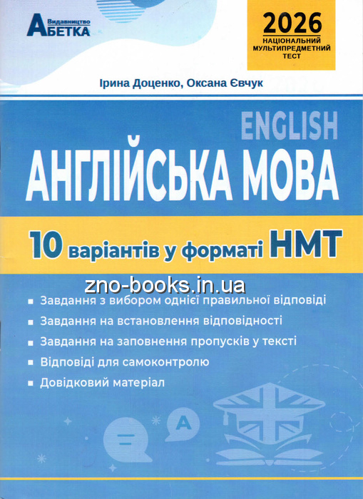 НМТ Англійська мова. 10 варіантів у форматі НМТ 2026 : Доценко І., Євчук О. Видавництво Абетка. купити