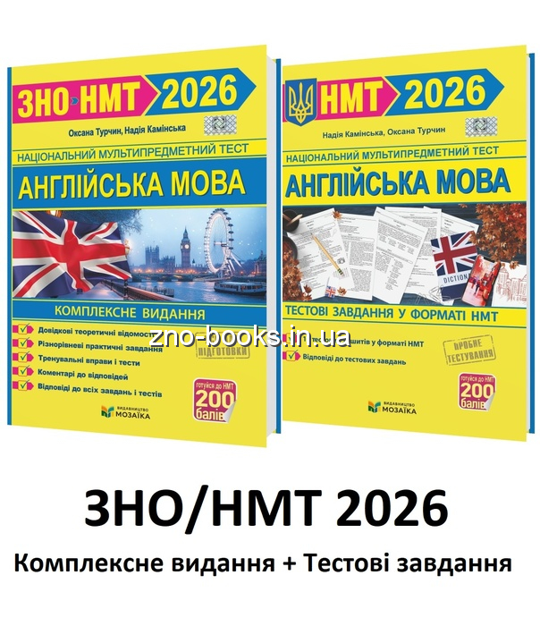 ЗНО / НМТ 2026 Англійська мова. Комплексне видання + Тестові завдання НМТ /КОМПЛЕКТ/ : Камінська Н., Турчин О. Видавництво Мозаїка.