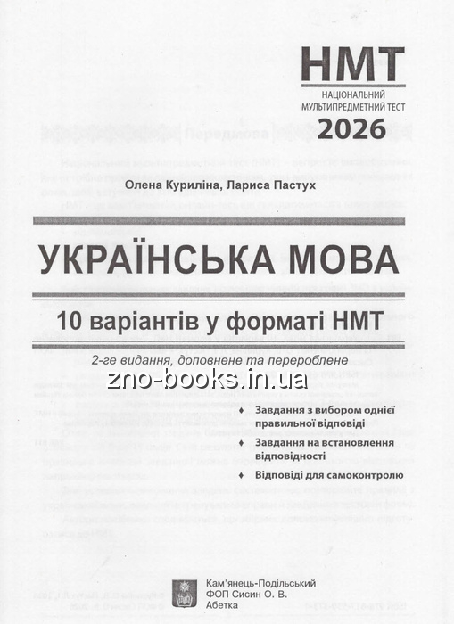 НМТ Українська мова. 10 варіантів у форматі НМТ 2026 : Куриліна О., Пастух Л. Видавництво Абетка. купити