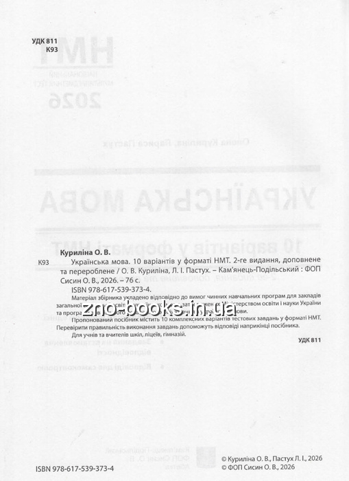 Пропонований посібник містить 10 комплексних варіантів тестових завдань у форматі НМТ. Структуру тестових завдань адаптовано до технічних характеристик завдань з української мови для зовнішнього незалежного оцінювання. Перевірити правильність виконання·завдань допоможуть відповіді наприкінці посібника.